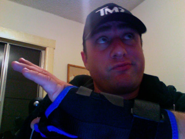 After seeing a doctor, I waiting around in pain for a few hours for my results. I was promised something for the pain when I arrived, but for some reason it never came. It would have cured my boredom and if not killed the pain, at least killed some time. Finally, the nurse, who was cute btw, brings me a brace, 2 vicodins and my results. It’s not broken according to the x-rays, but I probably have some ligament damage. Oh, well could be worse.